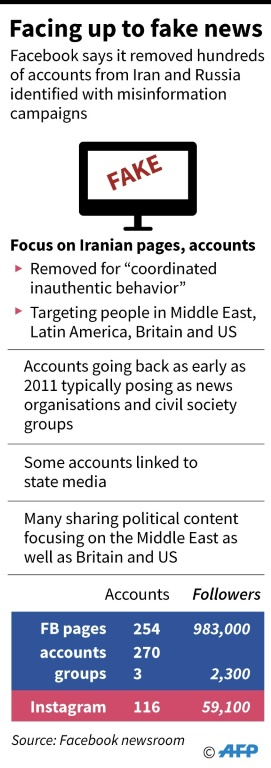 Facebook and Twitter unveiled fresh crackdowns on misinformation campaigns from Russia and Iran as analysts warned of more efforts to manipulate public debate ahead of the November US elections. /AFP Photo