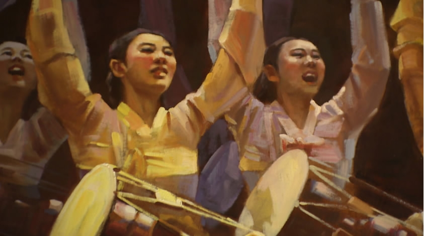 Paintings from DPRK often capture an experience in a vivid way. /CGTN Photo