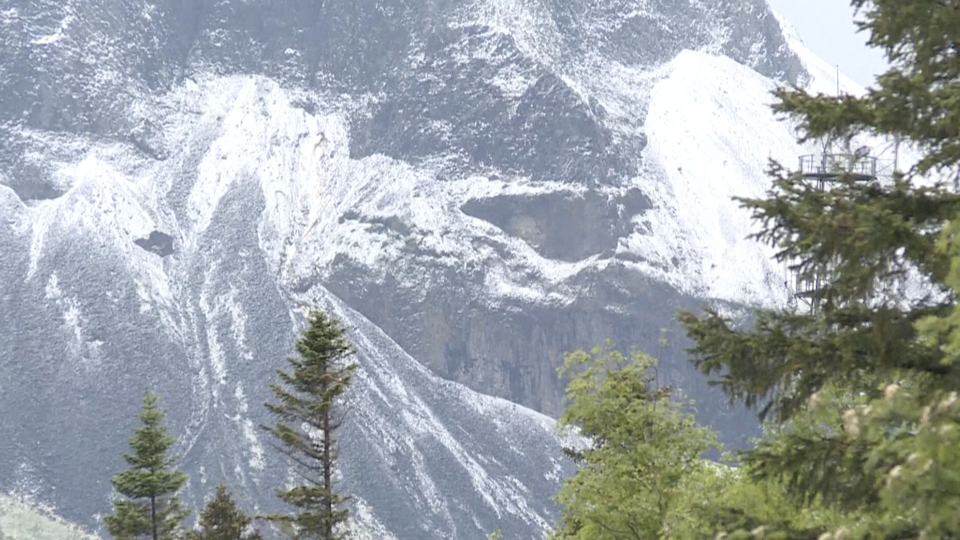 Hailstones and heavy snow hit the Changbai Mountains of northeast China's Jilin City on Wednesday. Hailstones also fell in the areas that are over 2,000 meters above sea level. The scenic spot implemented its emergency plan to persuade visitors to leave for their safety.