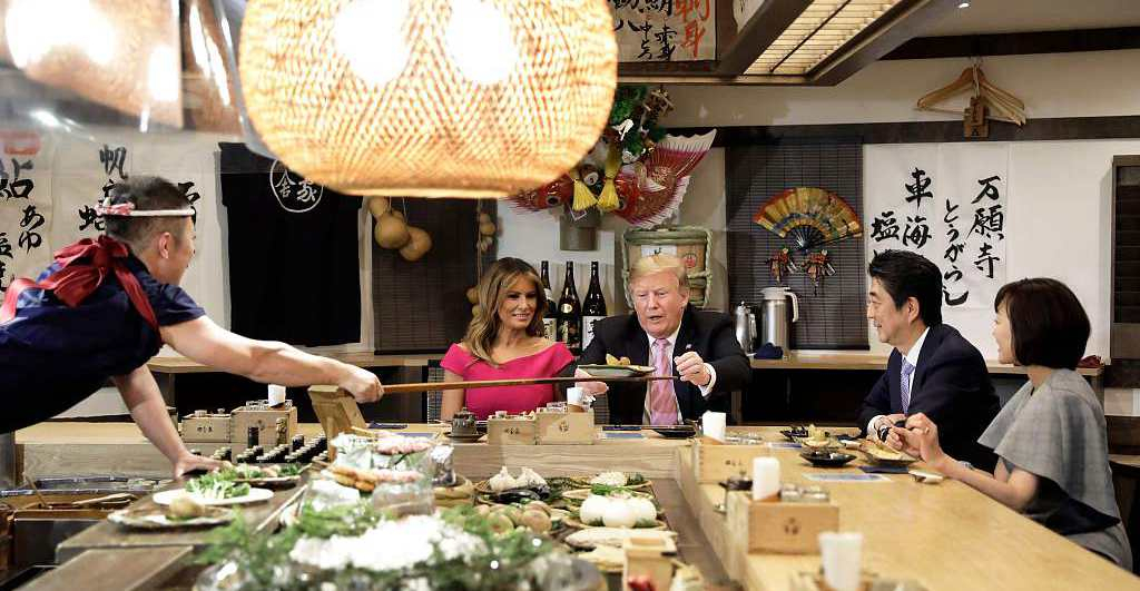 Just upon Trump's arrival, Japanese Foreign Minister Taro Kono said on May 24 that he plans to ask overseas news outlets to write Japanese names with the family name first and given name second, featuring changing from "Shinzo Abe" to "Abe Shinzo," as is the convention in Japan. /VCG Photo