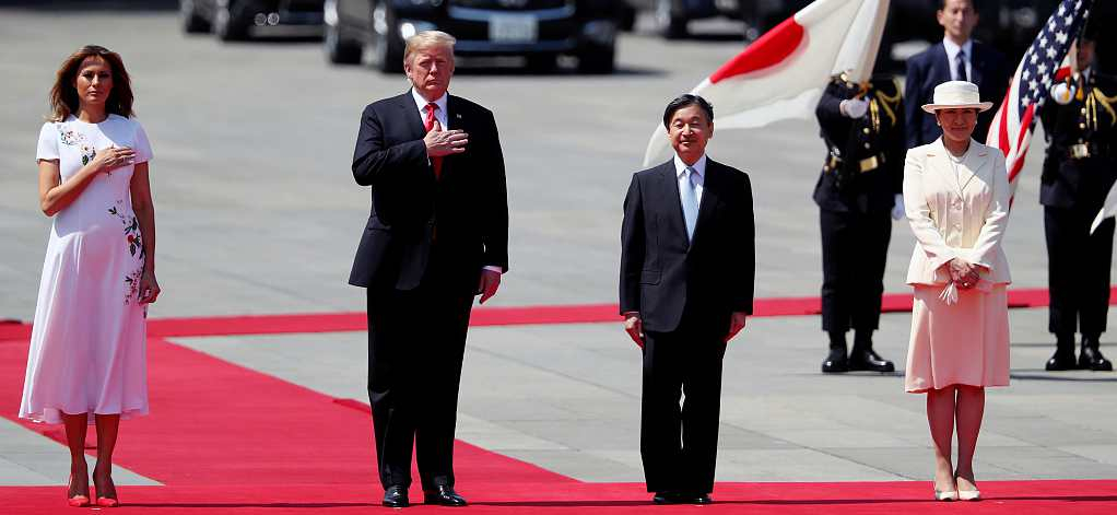 Trump also became the first foreign leader to meet with Japan's newly enthroned Emperor Naruhito. On Monday morning, a formal welcoming ceremony was held when Trump was greeted by the new emperor and his wife at the imperial palace in Tokyo. /VCG Photo