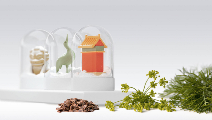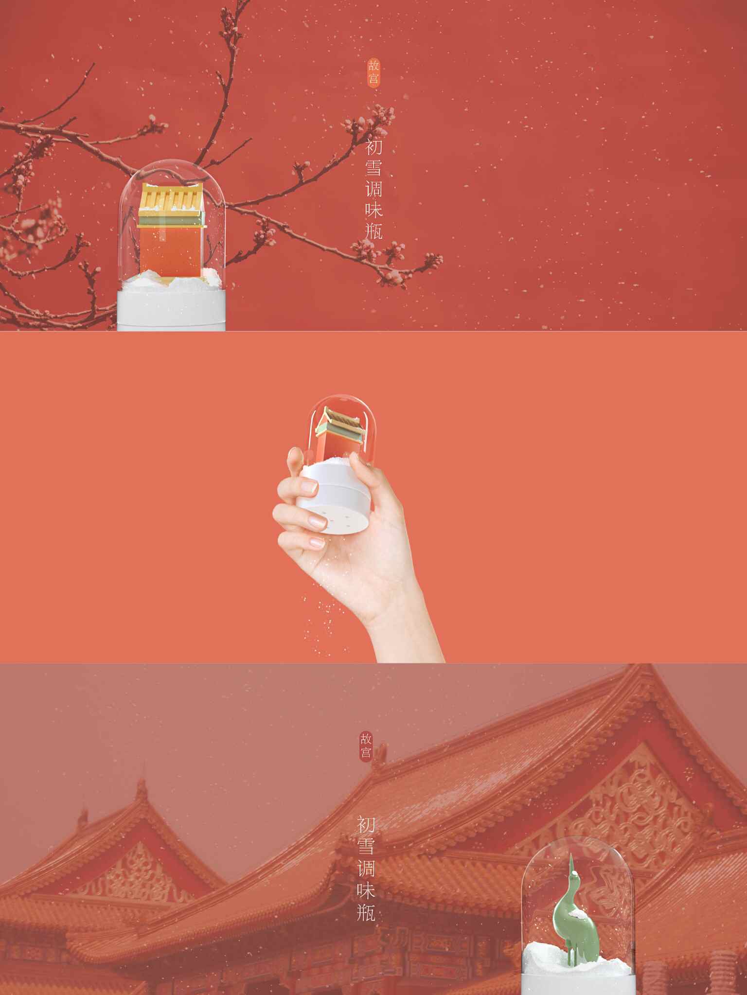 A set of the three-piece dispensers contain the palace wall, stone lion and bronze crane. When you put salt or sugar in, you can see “snow” falling down on them. The spice tins will be sold online on the day when the Palace Museum sees the first snow this year.