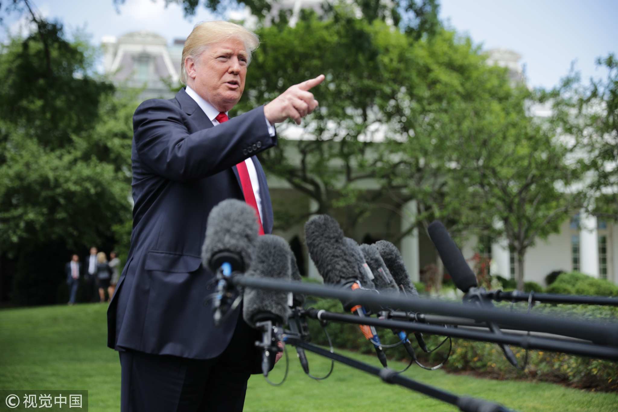 US President Donald Trump speaks to the media as he walks across the South Lawn while departing the White House, May 23, 2018, in Washington, DC. /VCG Photo