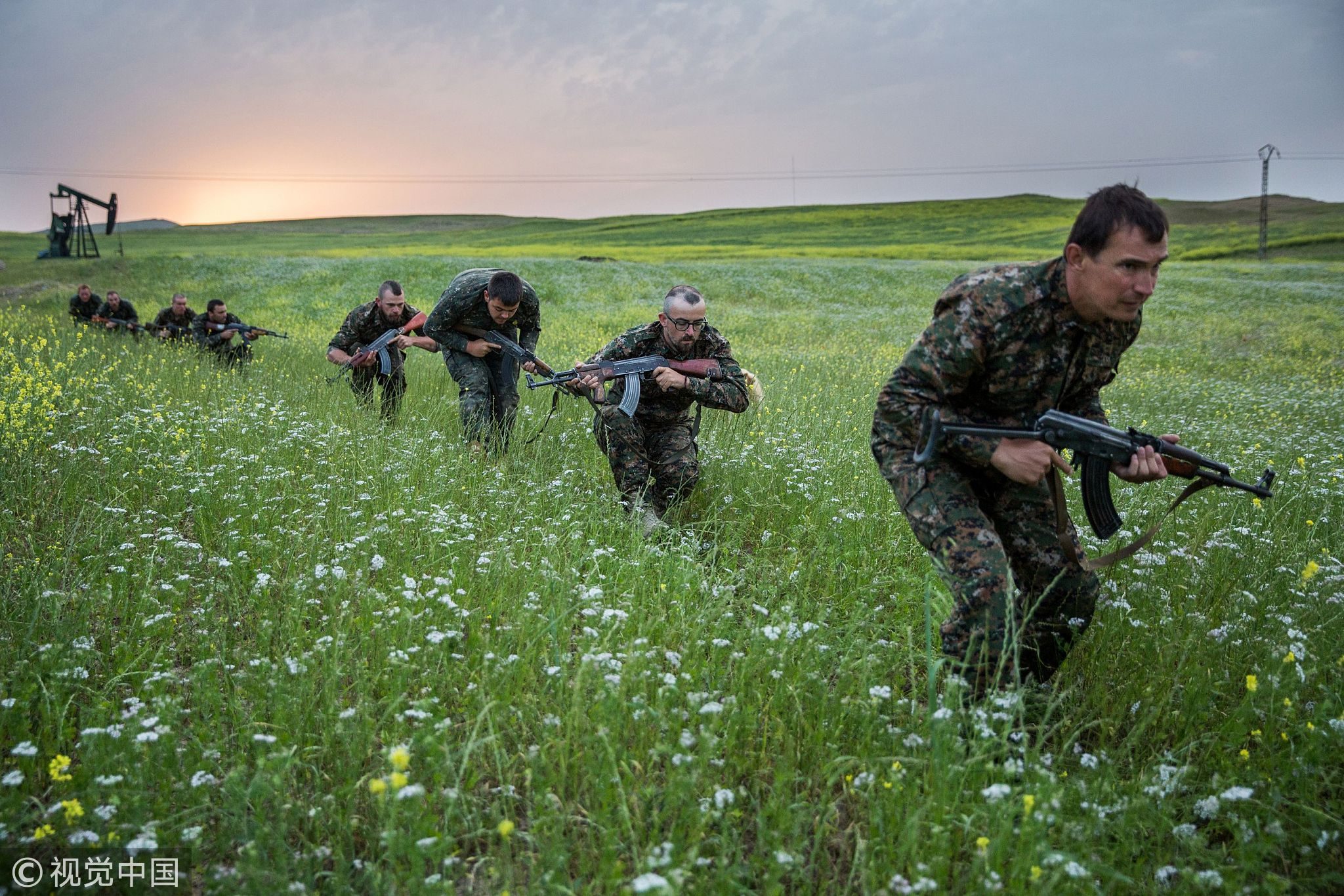 April 30, 2015: Foreign fighters who joined the Kurdish People's Protection Units (YPG) to fight in their ranks against jihadists and Islamist rebels in northeastern Syria take part in a training session. /VCG Photo