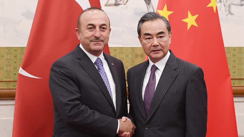 June 15, 2018: Turkish Foreign Minister Mevlut Cavusoglu (L) shakes hands with Chinese Foreign Minister Wang Yi before a meeting in Beijing, China. /VCG Photo