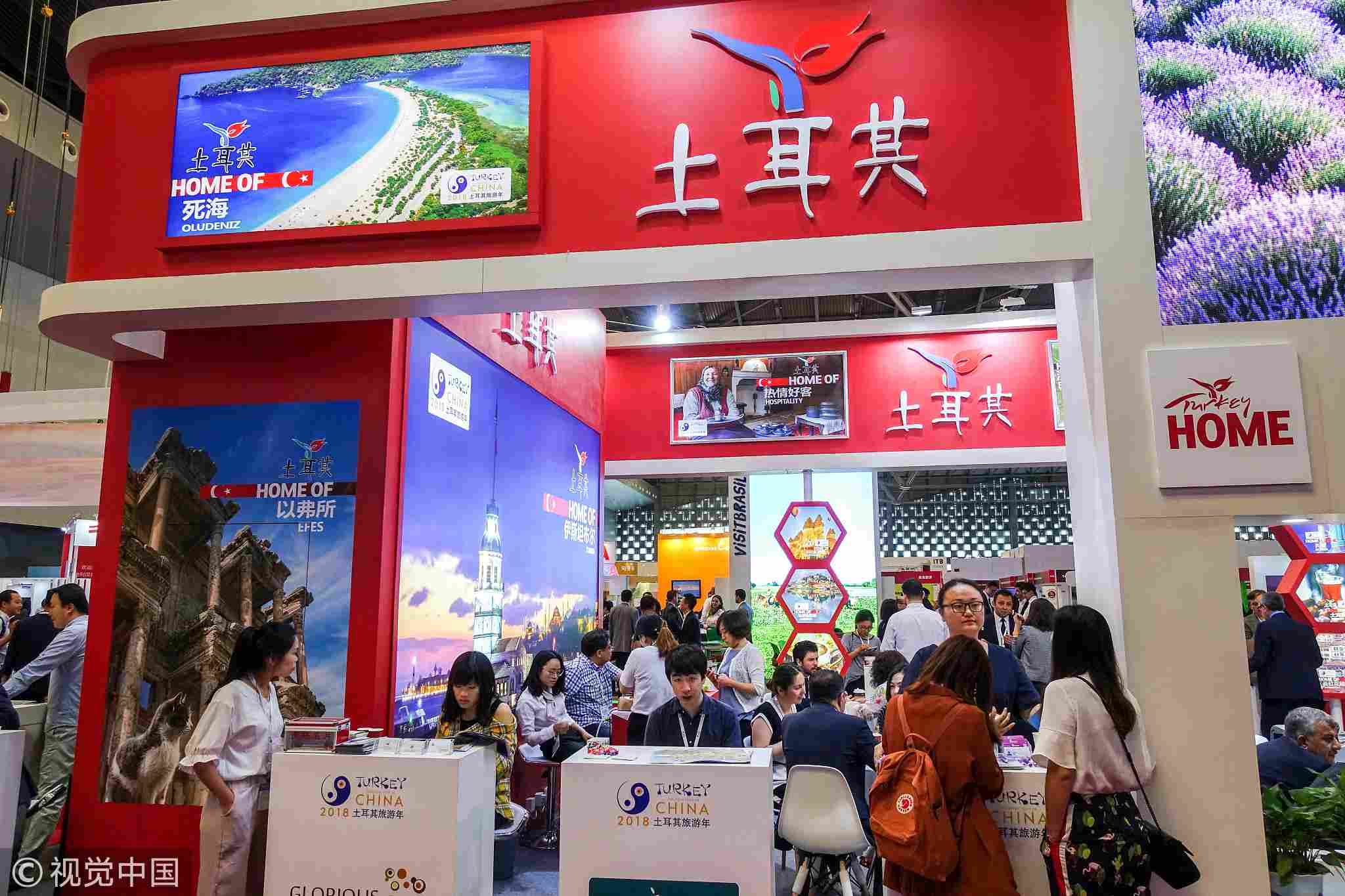 May 16, 2018: People visit a booth that promotes the 2018 Turkish Tourism Year at the ITB China 2018 Trade Fair in Shanghai, China. /VCG Photo