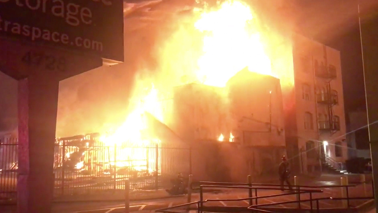 A large fire broke out on Sunday at an East Hollywood, California strip mall that had sustained heavy damage in a fire last year. The fire damaged at least eight apartments in the 25,006- square foot building.