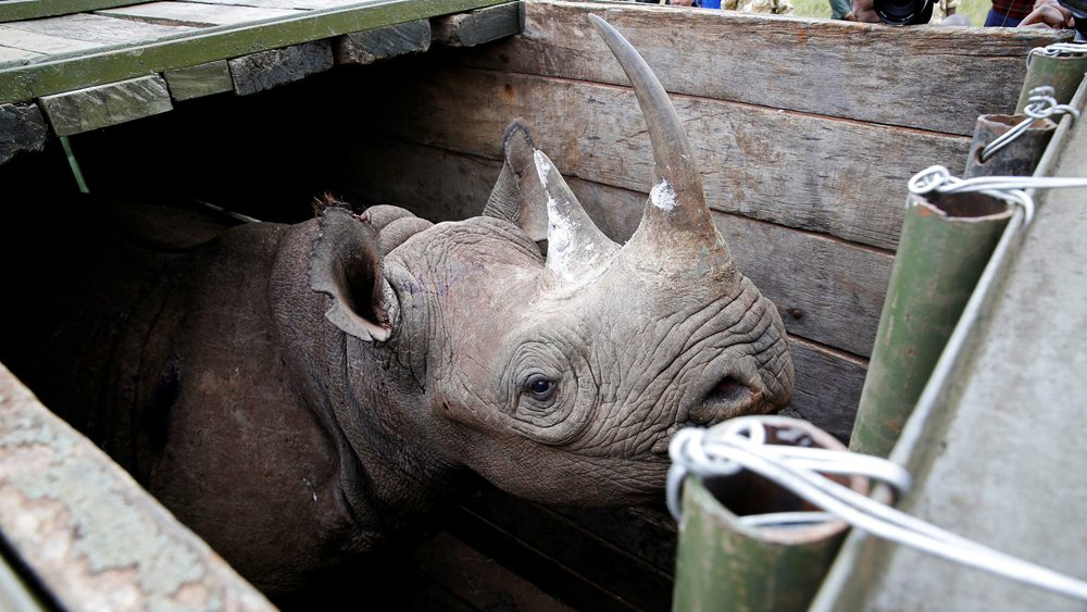 (Top image: A female black Rhino stands in a box before being transported during rhino translocation exercise in the Nairobi National Park, Kenya, June 26, 2018. /VCG Photo)