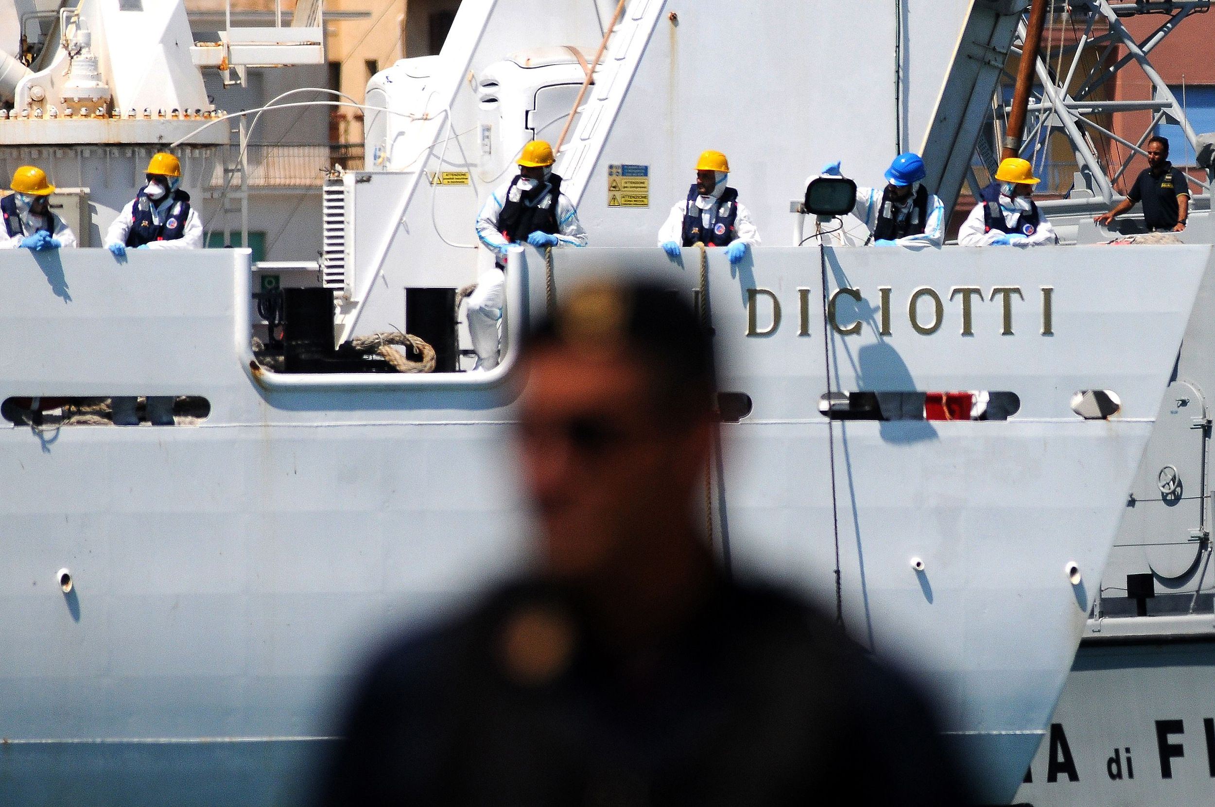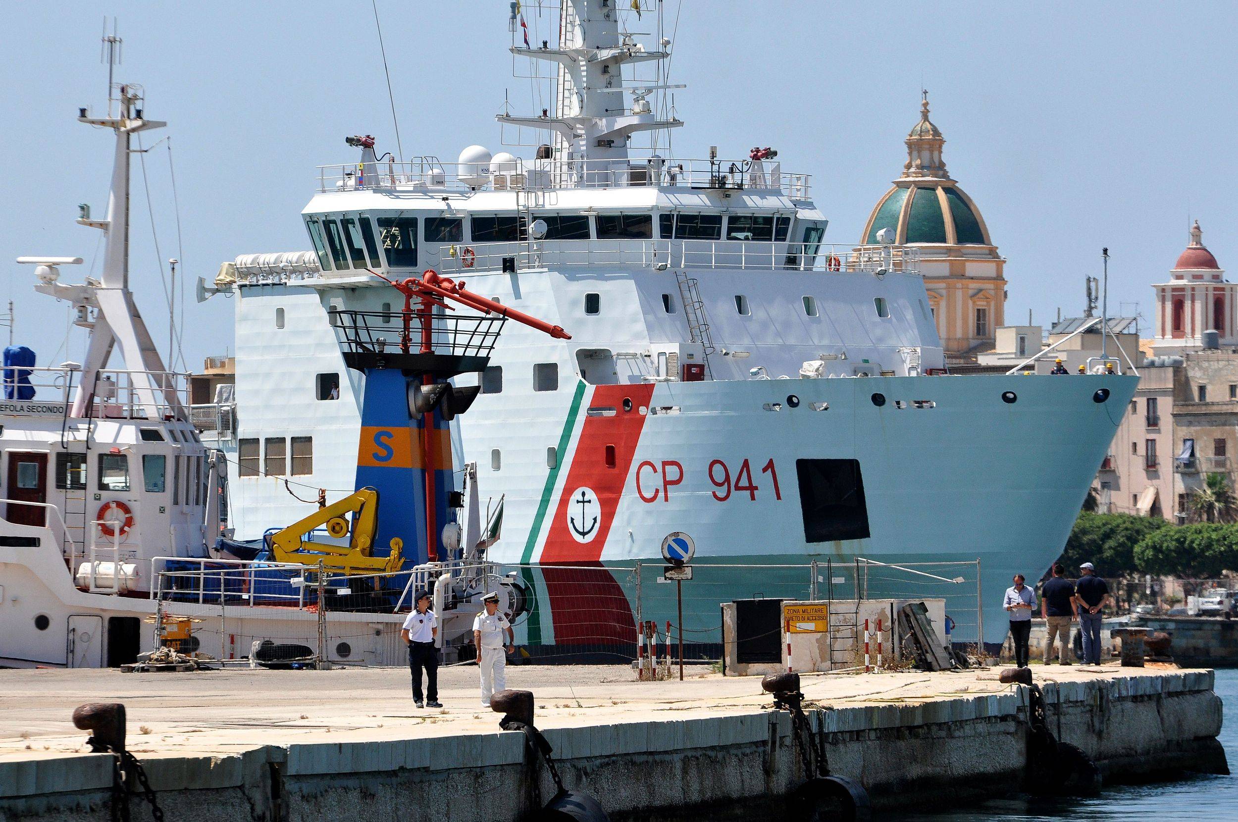 Italy's Diciotti coast guard vessel carrying 67 asylum seekers arrives in the port of Trapani on July 12, 2018. /AFP Photo