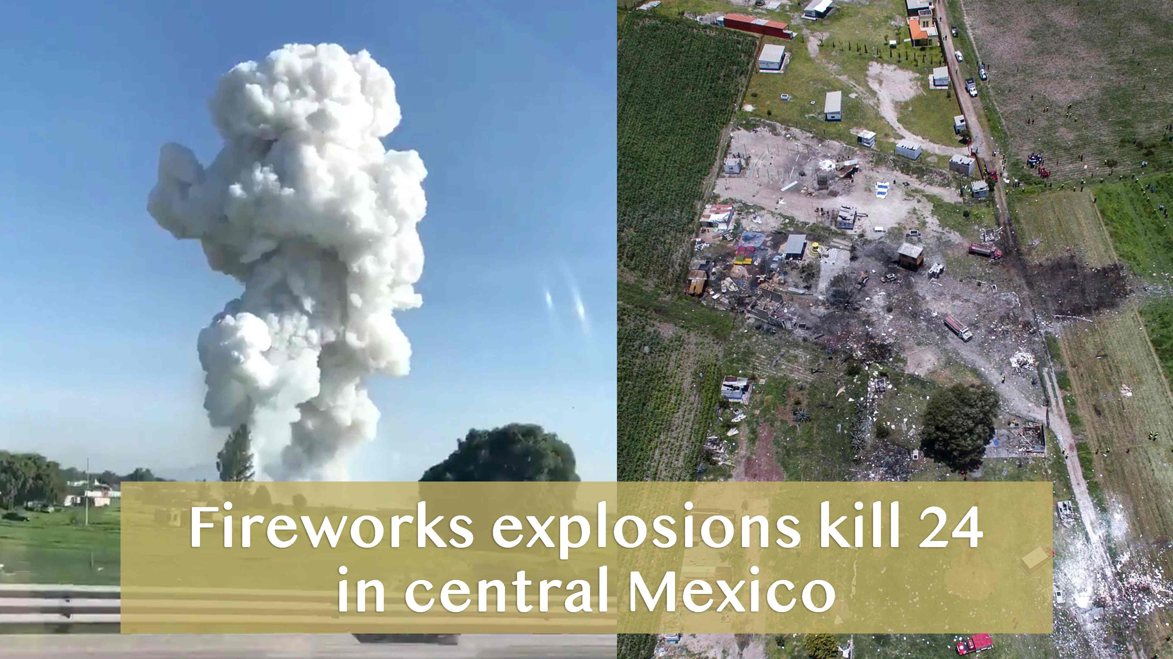 At least 24 people were killed in a series of explosions that ripped through several fireworks workshops Thursday in the town of Tultepec in central Mexico, including rescue workers who died saving others.