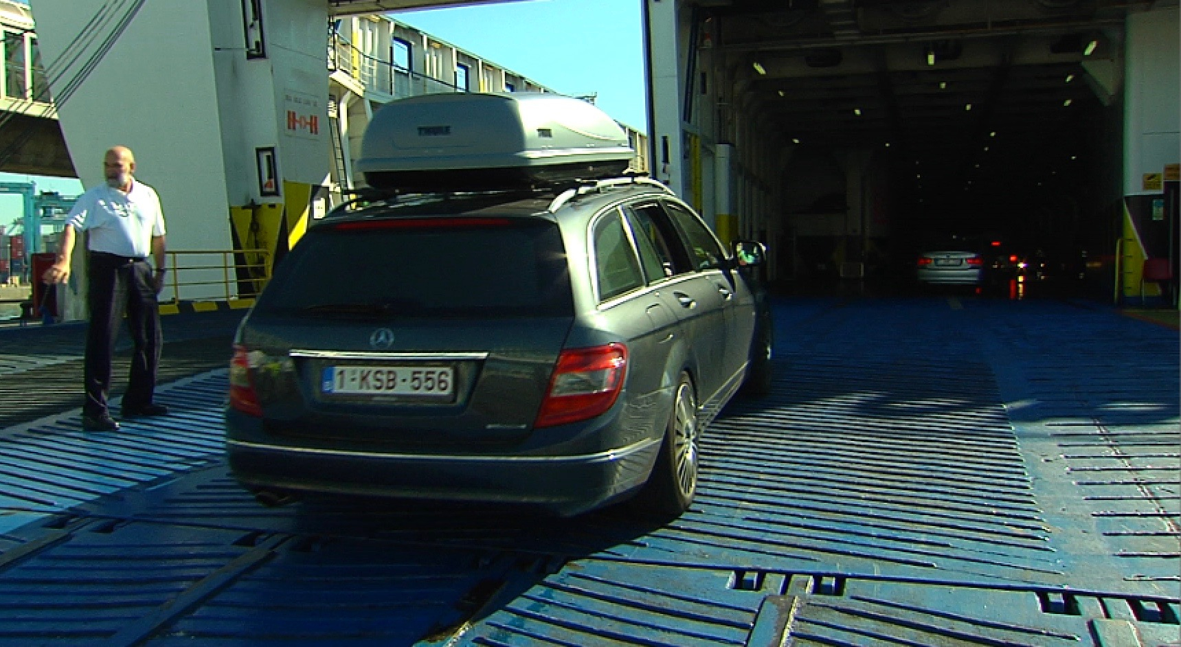 A car boards a ferry bound for Tangier. /CGTN Photo