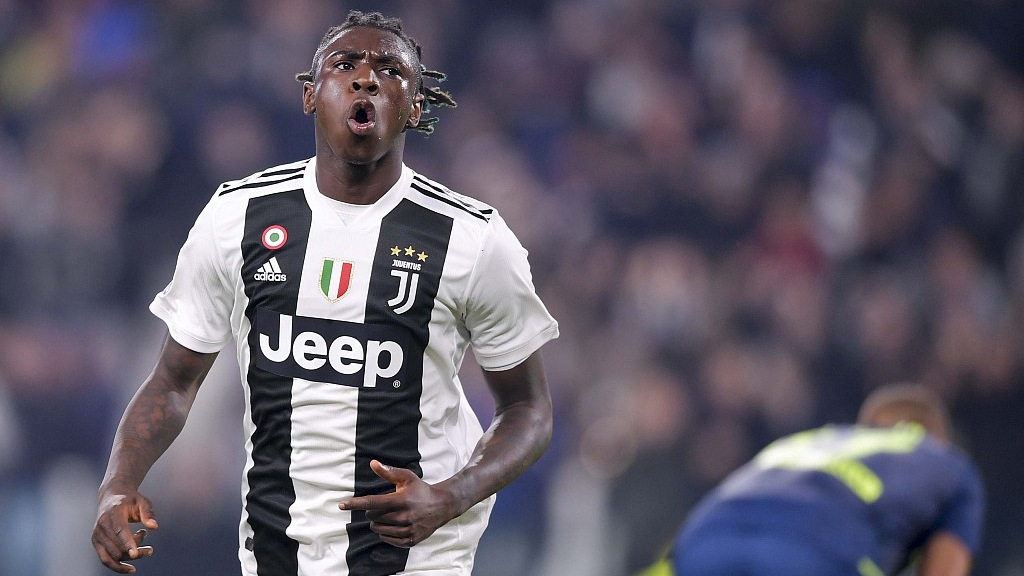 Moise Kean of Juventus FC celebrates after scoring a goal during the Serie A football match between Juventus and Udinese in Torino, Italy, March 8, 2019. /VCG Photo