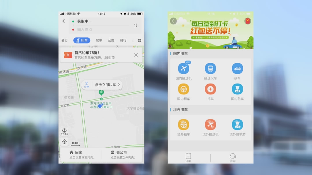 Internet companies including Meituan, Ctrip and Gaode have joined in the car-hailing competition. /CGTN photo