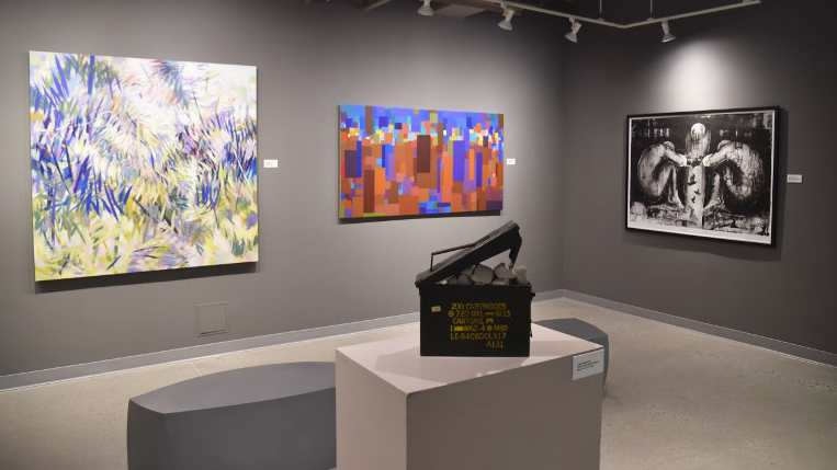 While it's about art, not war, and the museum offers little education on the Israeli-Palestinian conflict itself, the longing for land, for peace and for self-determination permeates much of the work.