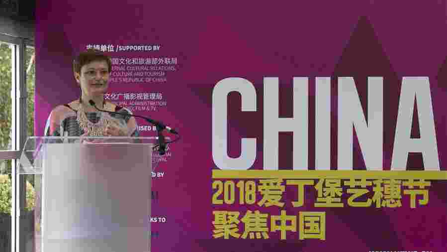 Pan Xinchun, Consul General of Chinese Consulate General in Edinburgh, speaking at the launch ceremony for China Focus at the Edinburgh Festival Fringe in Edinburgh, Scotland, Britain, on Aug. 3, 2018. /Xinhua Photo