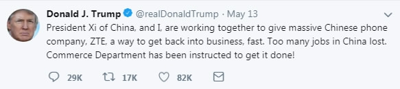 President Trump has tweeted in the last few days that he is willing to address the trade issue with China./From President Donald Trump's Twitter