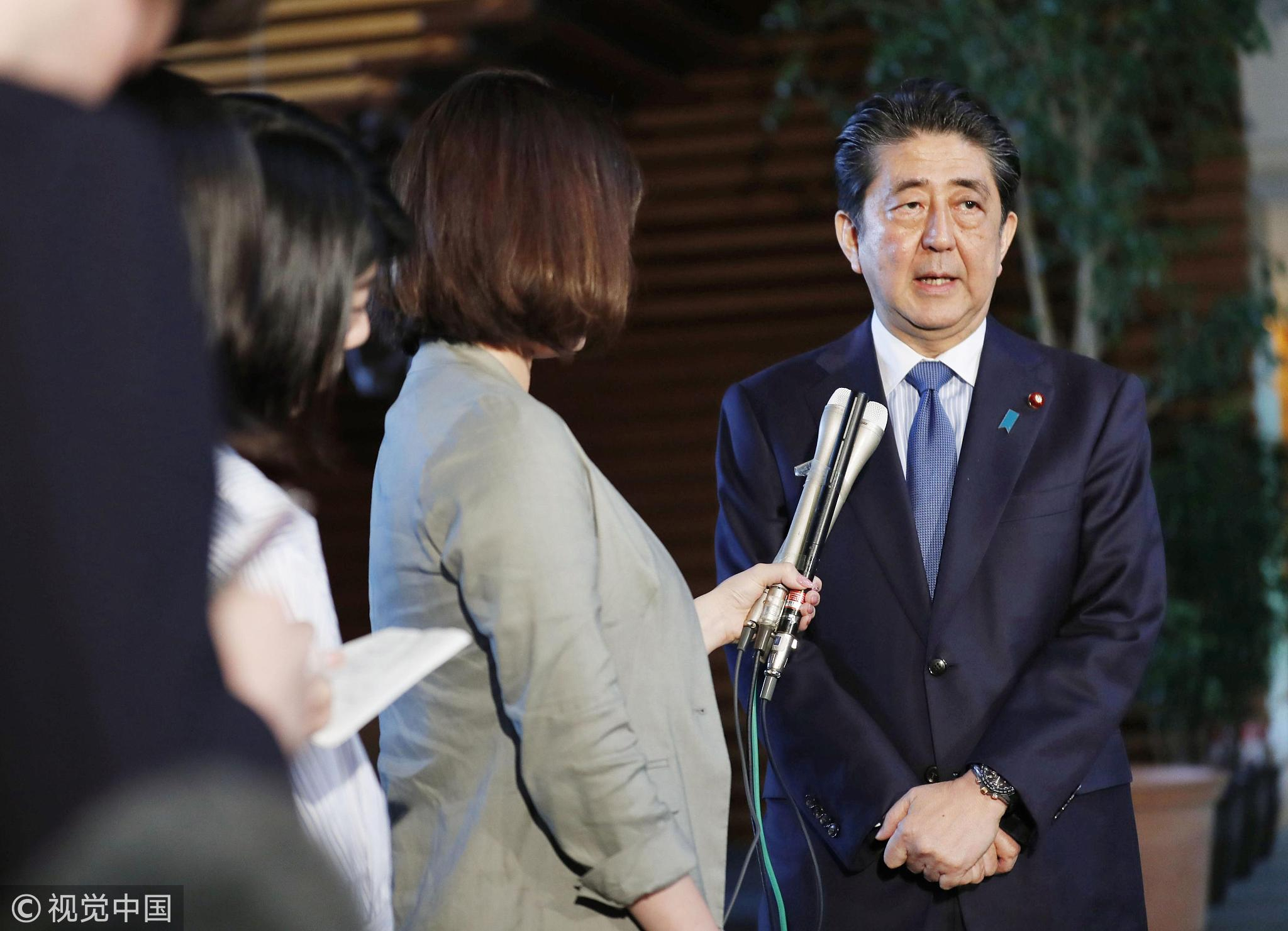 Japanese Prime Minister Shinzo Abe speaks to reporters at his office in Tokyo on June 12, 2018. /VCG Photo