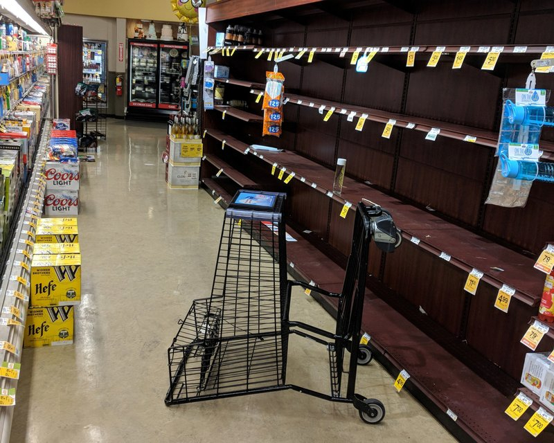 In this May 29, 2018 file photo, supermarket shelves are stripped bare of bottled water in Salem, Ore., US, after officials warned residents that tap water was unsafe for children and the elderly due to an algae bloom. /AP Photo