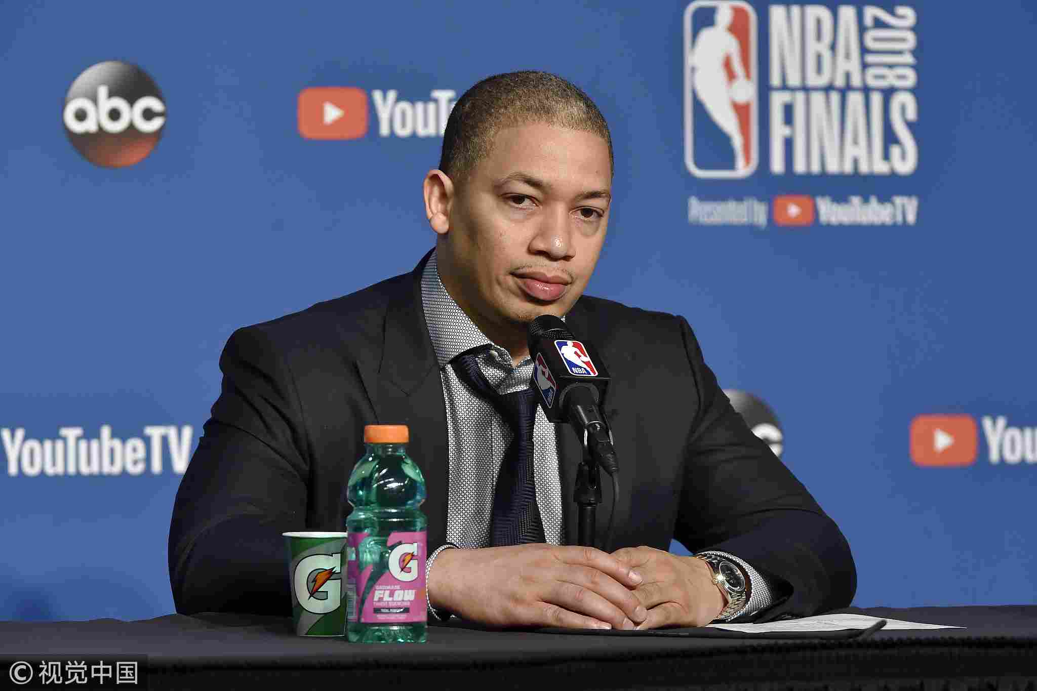Coach Tyronn Lue of the Cleveland Cavaliers speaks with the press after the game against the Golden State Warriors in Game Four of the 2018 NBA Finals on June 8, 2018 at Quicken Loans Arena in Cleveland, Ohio. /VCG Photo