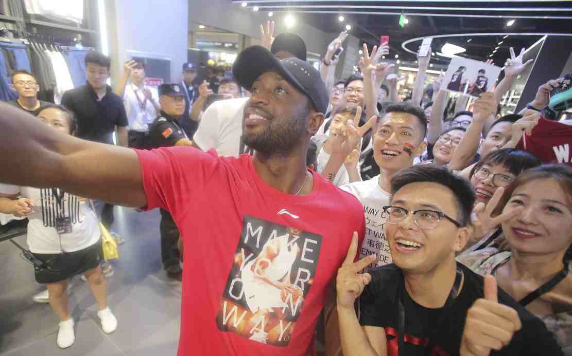 Dwyane Wade poses for a selfie with fans in Jinan, China, on July 14, 2018. /VCG Photo