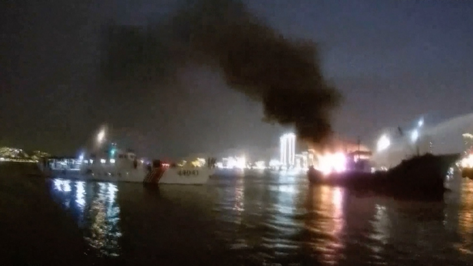 Coastguards on patrol found a fishing boat engulfed in flames near a dock in Shantou City, south China’s Guangdong Province on Friday. The coastguard used high-pressure water canon to bring the blaze under control. Several officers rushed onto the boat and removed gas tanks and sprayed water into the burning cabin. It took three hours to extinguish the flames. No casualties have been reported. The preliminary investigation pointed to a short circuiting power line as the cause of the flames.