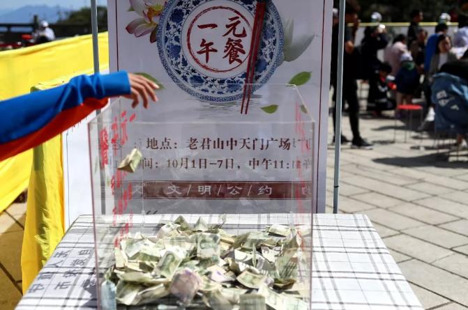 Laojun Mountain's "one-buck lunch meal" has set the social media platforms buzzing with heated discussions. While some netizens believed the service was just another marketing scam, others praised the park for offering food at a reasonable price.