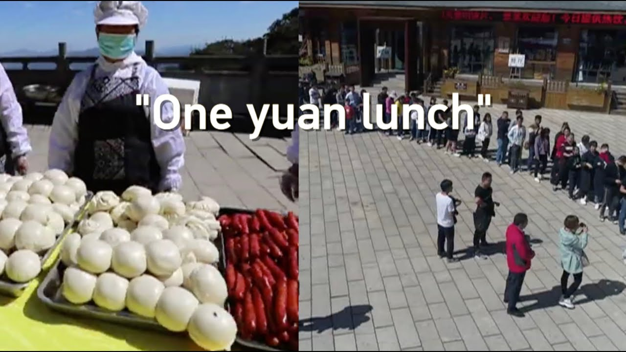 Food and drinks sold at many Chinese tourist spots are often notoriously priced higher than their market price. But there are always exceptions. A national geological park in central China is winning hearts during the National Day holiday week by offering "one-buck lunch meal."