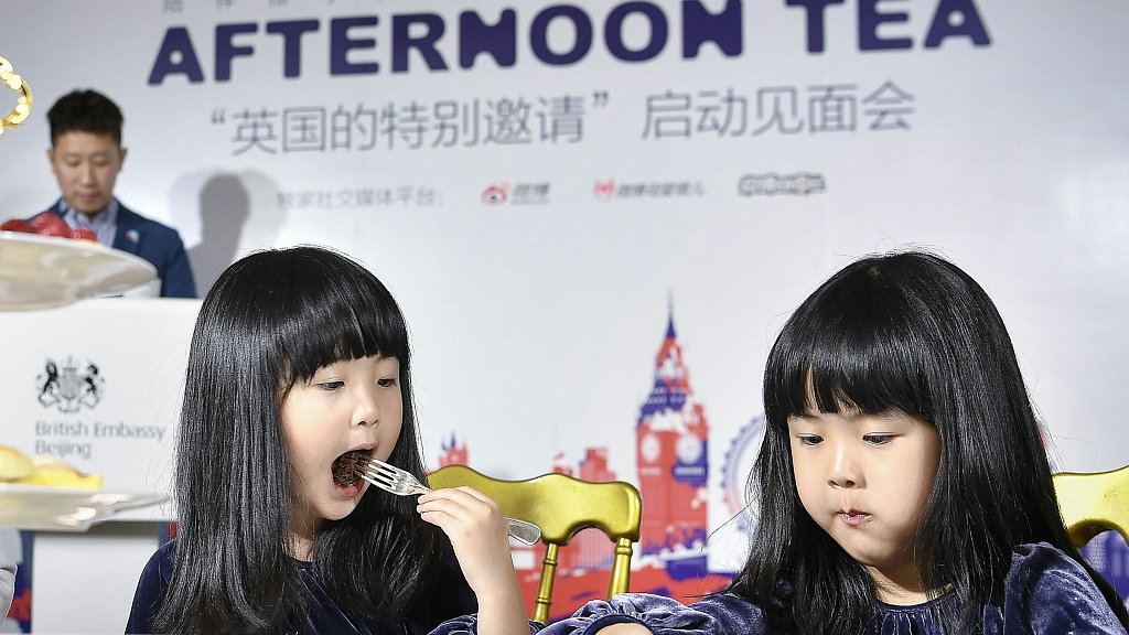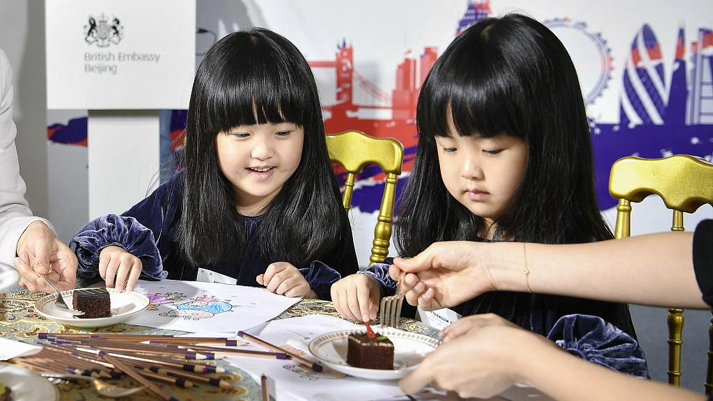 The viral video was noticed by the British Embassy in China and the twins were invited for afternoon tea with Ambassador Dame Barbara Woodward. /VCG Photo