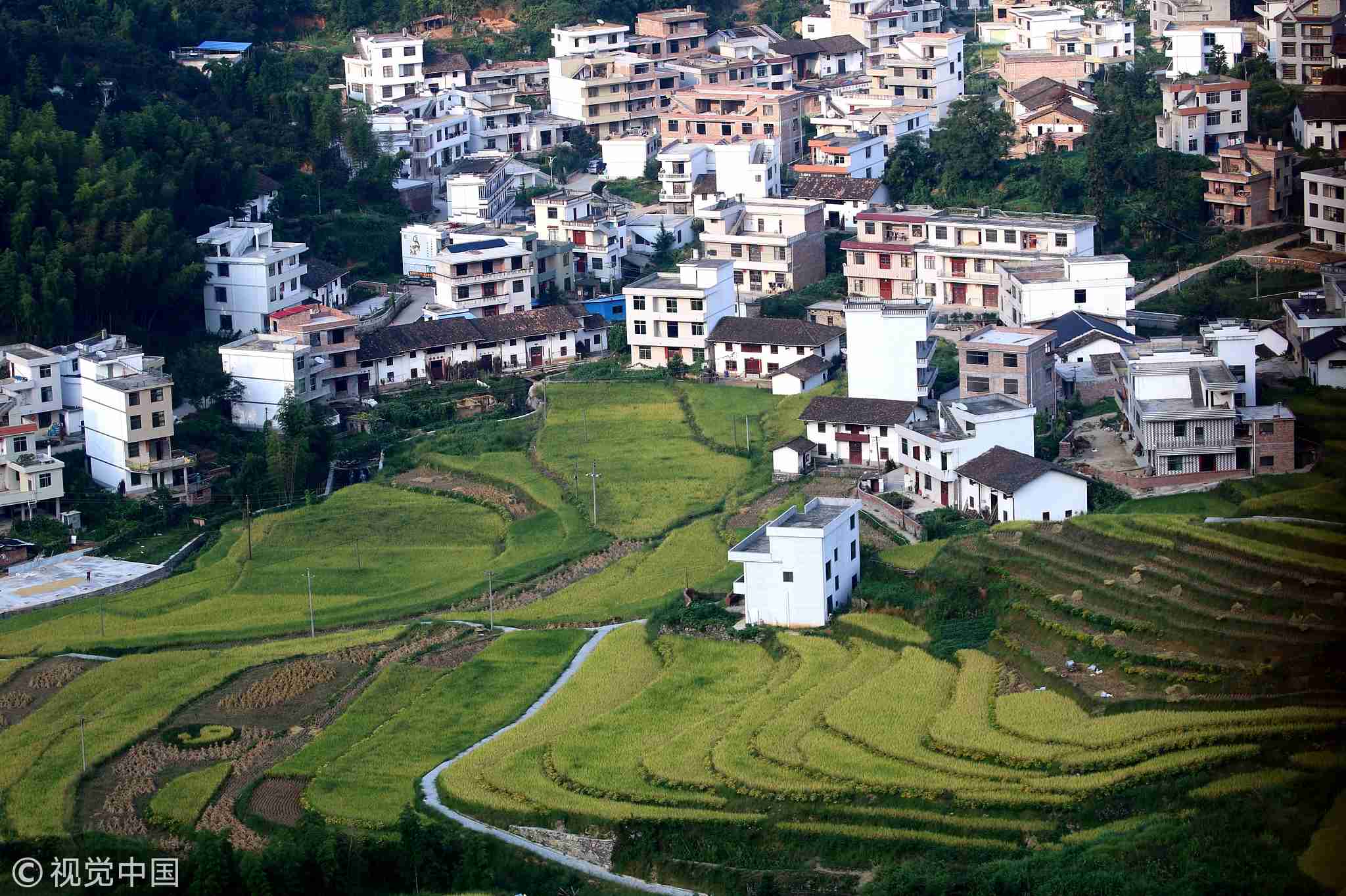 Terraced fields and buildings in Jitian village, Jiangxi Province. /VCG Photo