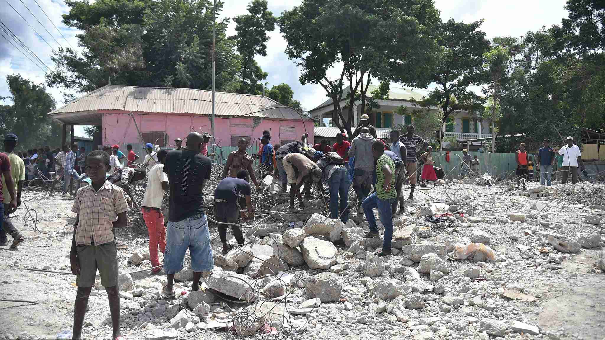 (Cover photo: Haitian people collect metal from the destroyed auditorium on October 7, 2018. /VCG Photo)