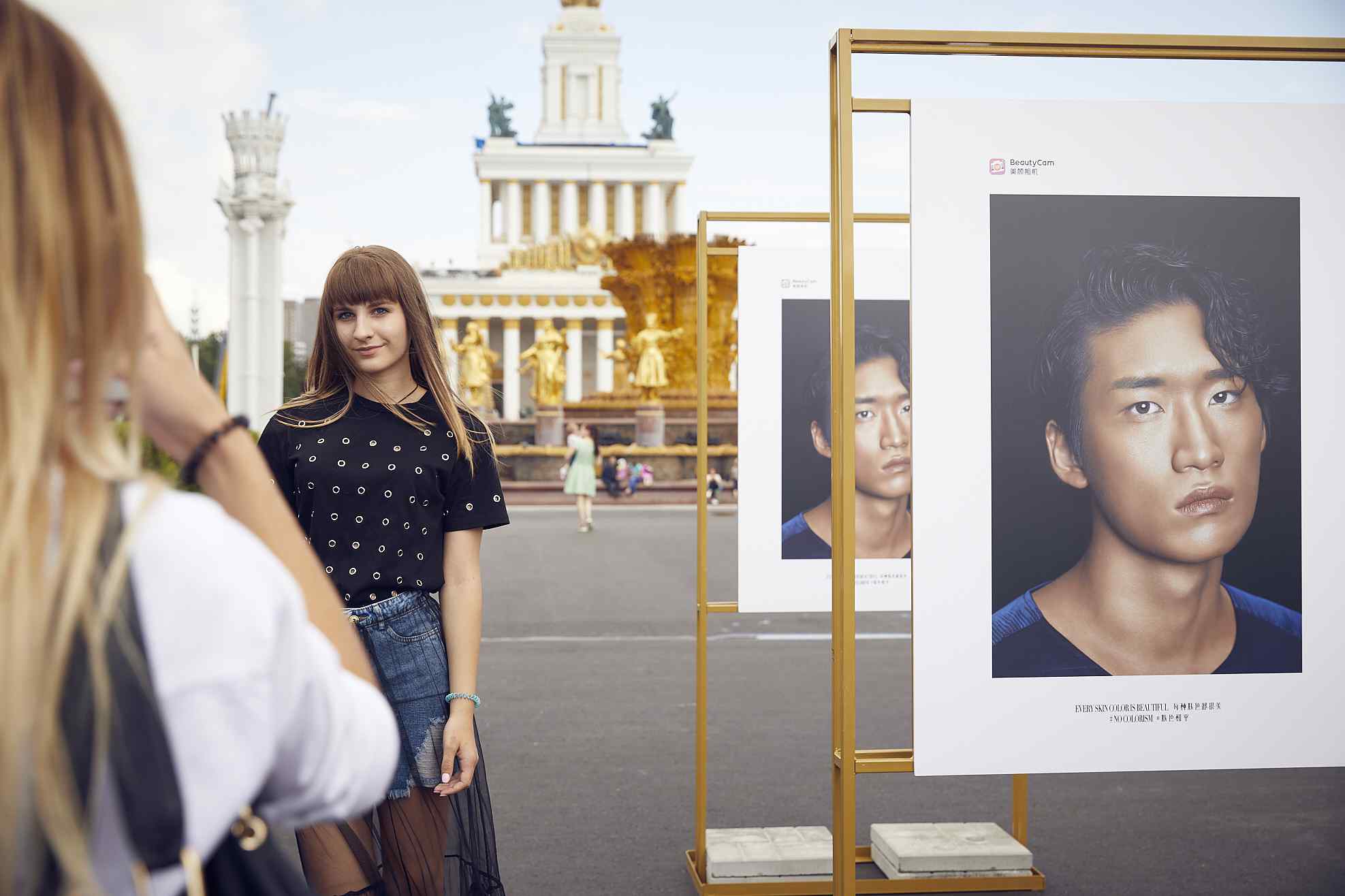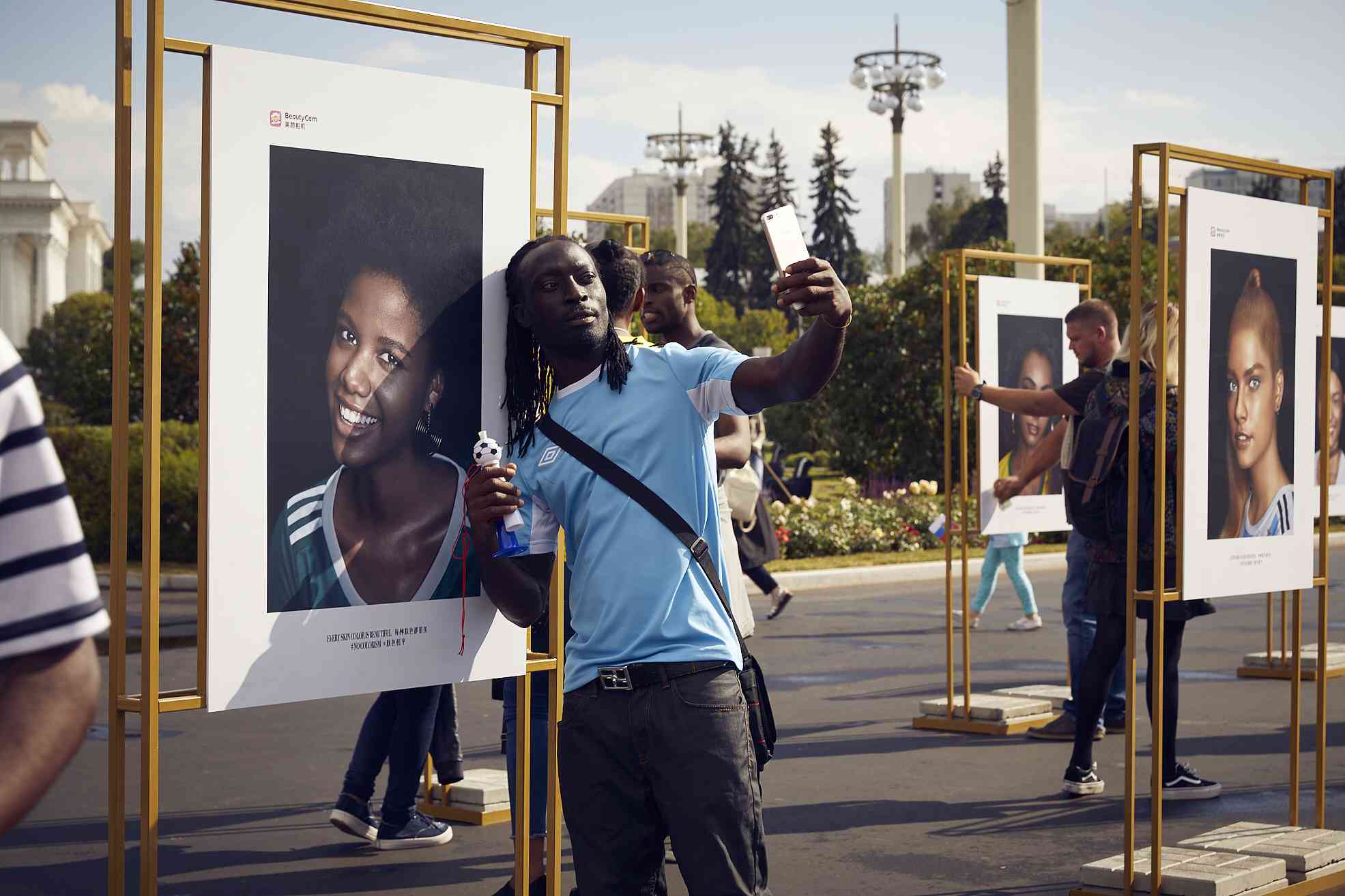 This is a charity art exhibition themed "NO COLORISM" hosted by BeautyCam, a facial beautification camera app, in Russia, during the World Cup. /VCG Photo
