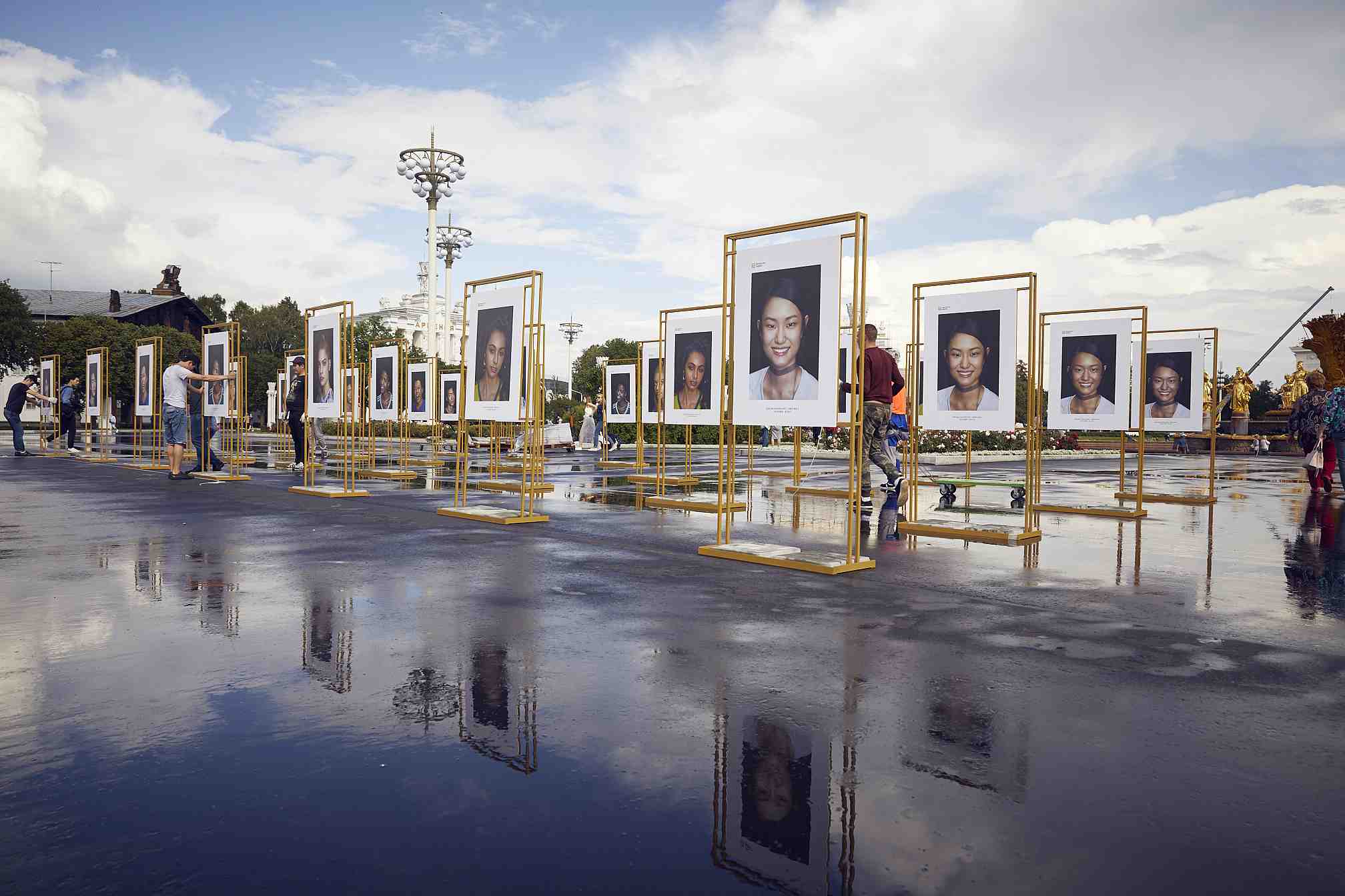 On Thursday, a set of photos featuring diverse skin colors caught the eyes of visitors at VDNKH Plaza, outside a football stadium in Moscow. /VCG Photo