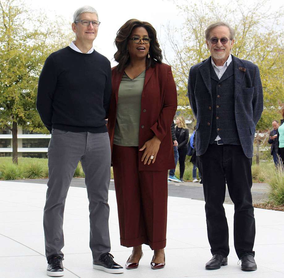 Director Steven Spielberg, TV host Oprah Winfrey and Hollywood stars Jennifer Aniston, Reese Witherspoon and Steve Carrell made appearances at the event that brings Apple into direct competition with Netflix and the rest of the entertainment sector.