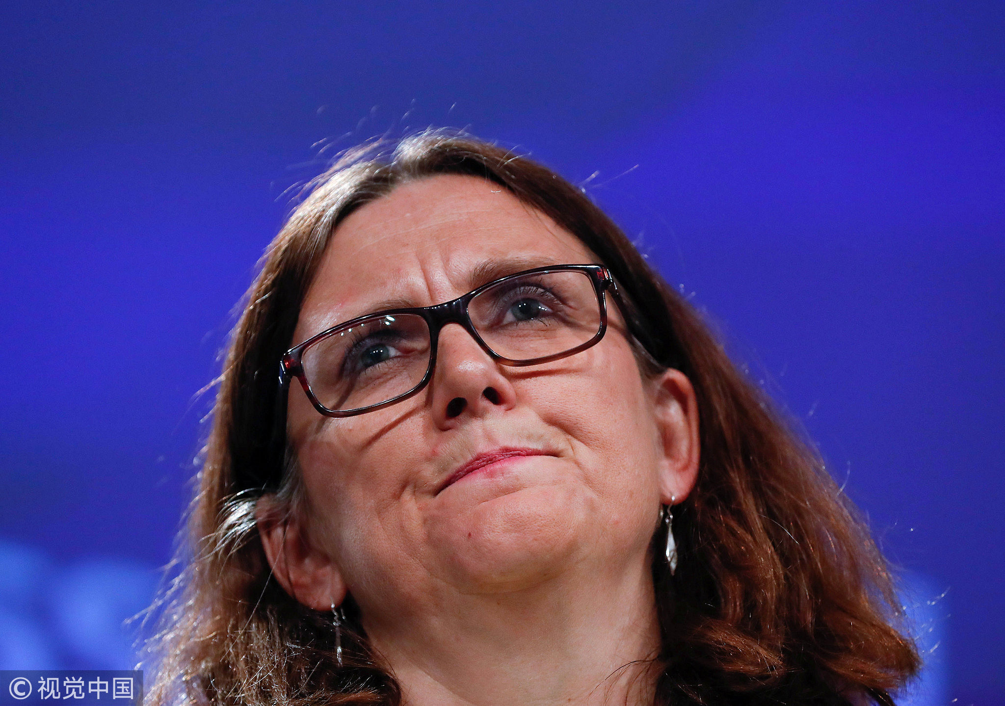 Cecilia Malmstrom, EU commissioner for Trade holds a press conference on the US restrictions on steel and aluminium affecting the EU in Brussels, Belgium on 01.06.2018/VCG Photo