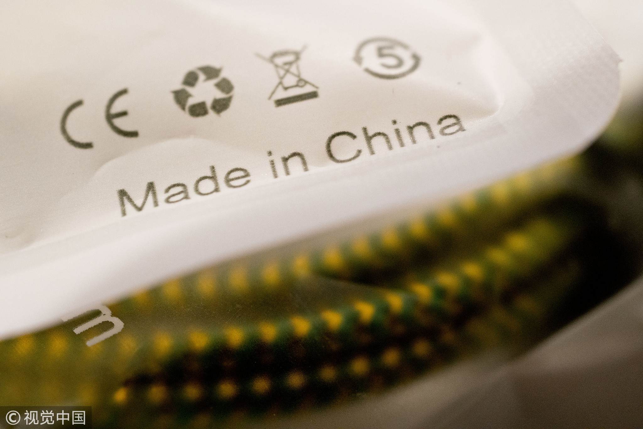The words "Made in China" are seen on a package in Tiskilwa, Illinois, U.S., on Tuesday, April 10, 2018./VCG Photo