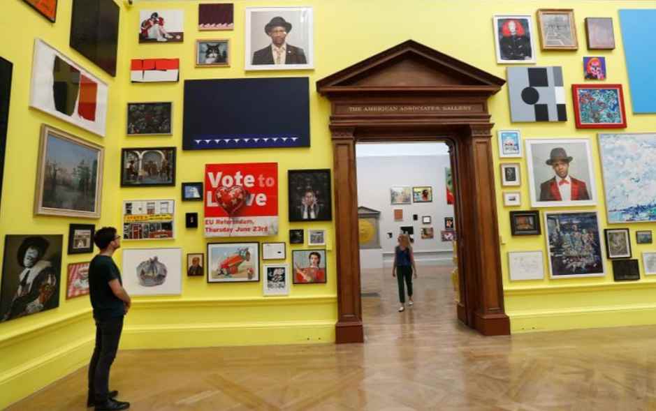A “Vote Leave” Brexit referendum poster that graffiti artist Banksy has transformed to read “Vote to Love” is among the highlights of the summer exhibition at the Royal Academy of Arts, which curator Grayson Perry opened to the media on Tuesday.