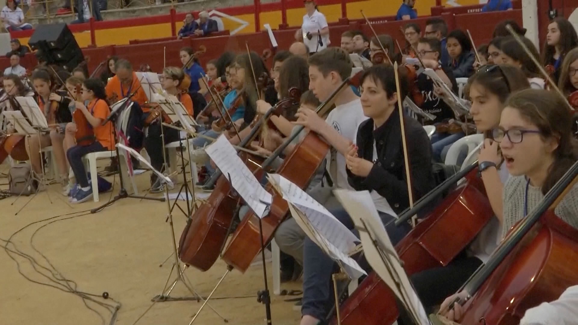 Alicante, a Spanish port city, hosted the world's largest music lesson with more than 5,000 participants on Saturday night. The mass music lesson was held in the bullring of Alicante by the Federation of Music Societies of the Valencian Community to commemorate the 50th anniversary of the Federation.