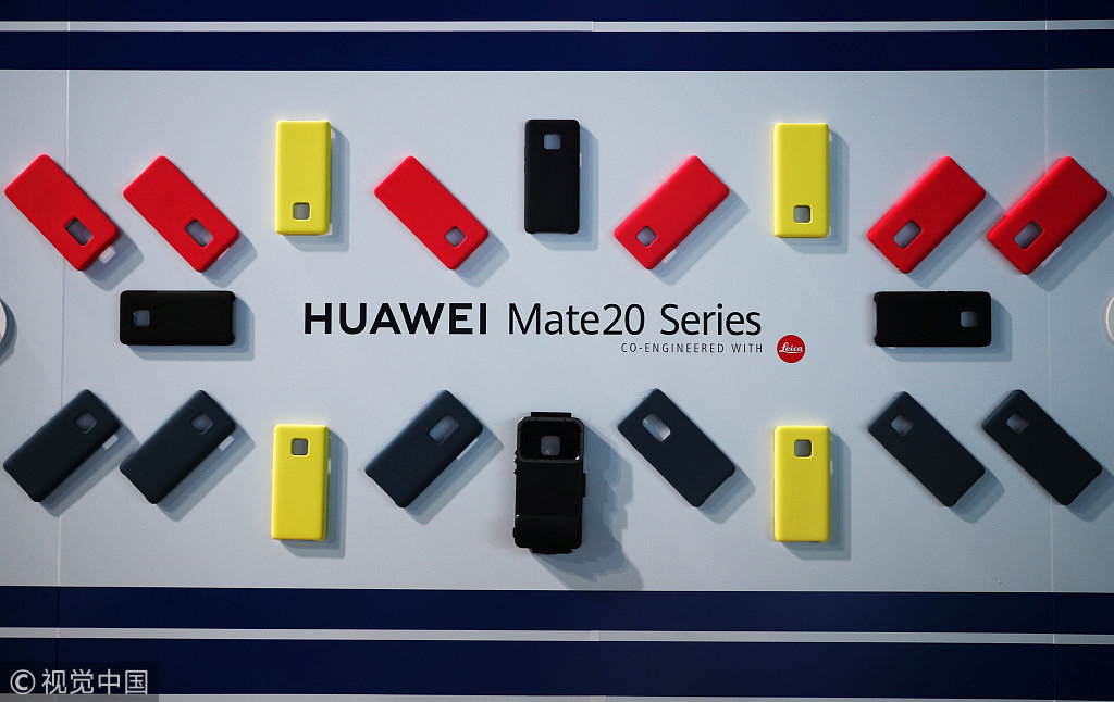 A sign for the Huawei Mate20 smartphone series is seen at a launch event in London, Britain, October 16, 2018. /VCG Photo