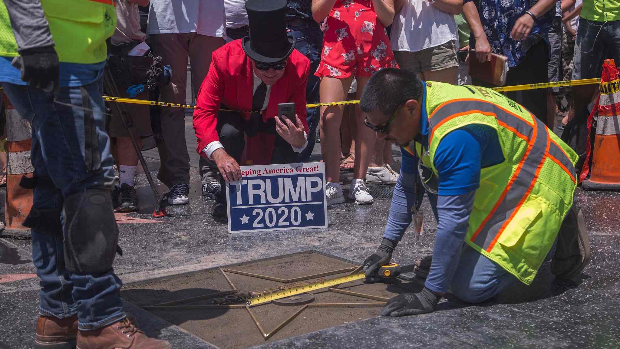 Trump’s star on the Hollywood Walk of Fame has become a target for his critics since his election in 2016. Two years ago, a man struck the star with a sledgehammer. /VCG Photo