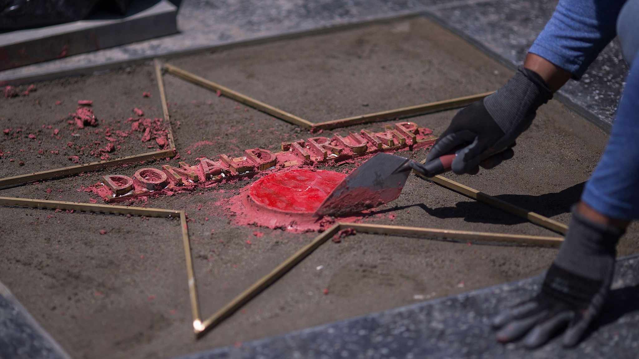 Workers from the Hollywood Historic Trust began to repair the star, which is expected to be covered up for a few days during the process, the cost of which was not revealed. /VCG Photo