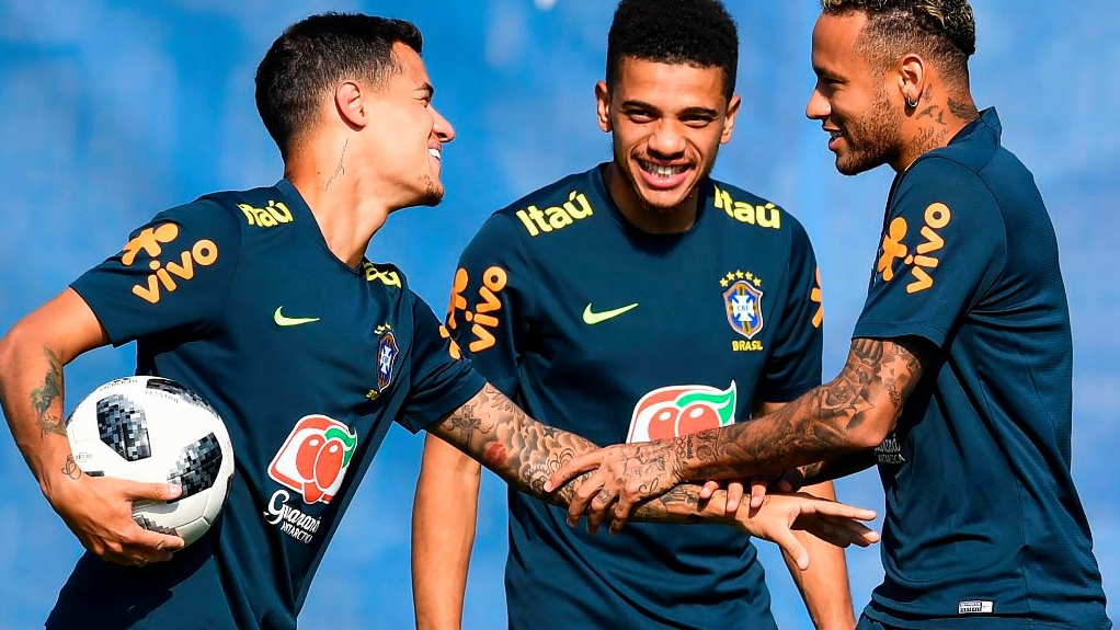 Taison takes part in a training session ahead of the Russia 2018 World Cup quarter-final football match between Brazil and Belgium on July 6. /VCG Photo