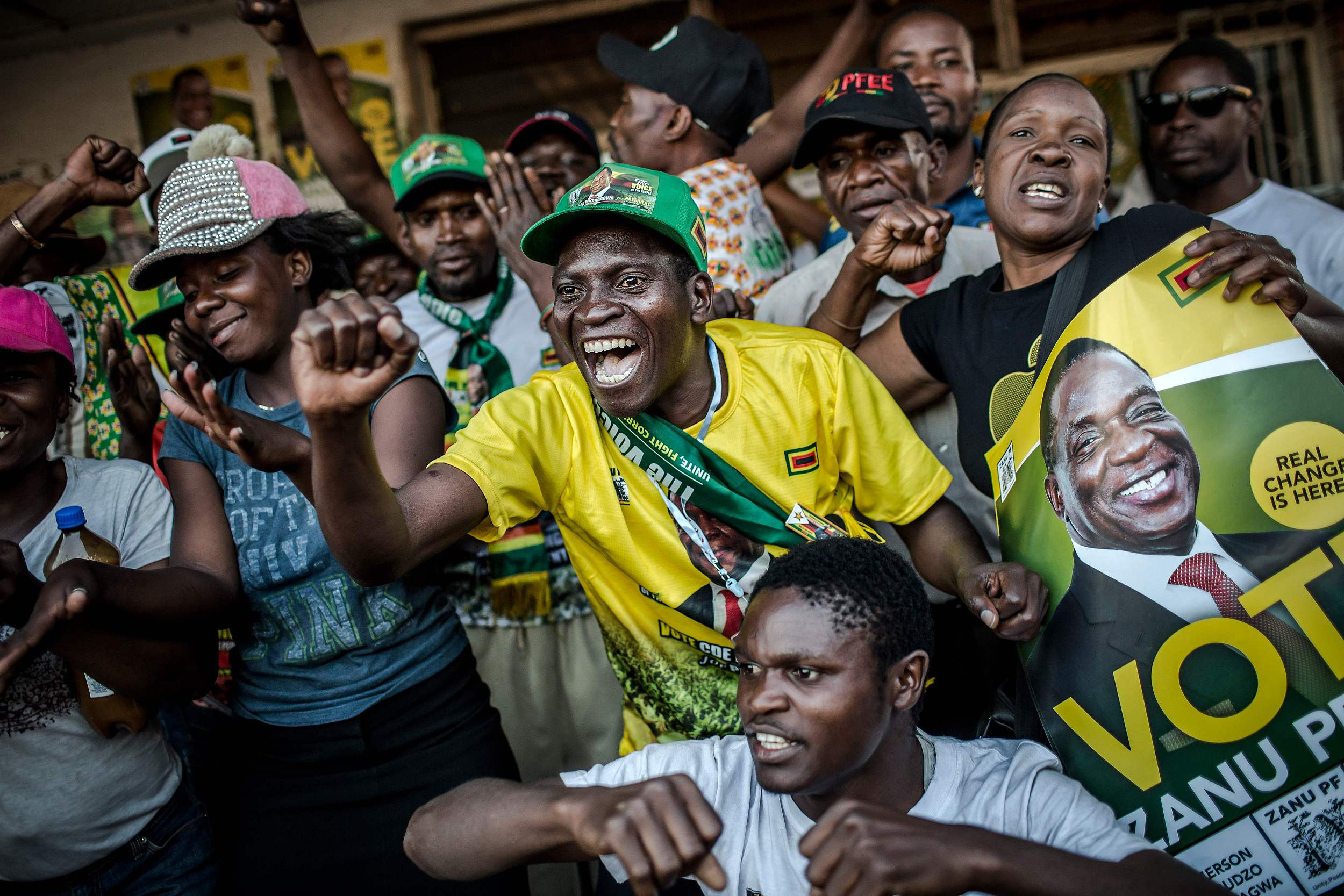 Supporters of Emmerson Mnangagwa celebrate in Mbare, a district of Zimbabwe's capital Harare, August 3, 2018. /VCG Photo