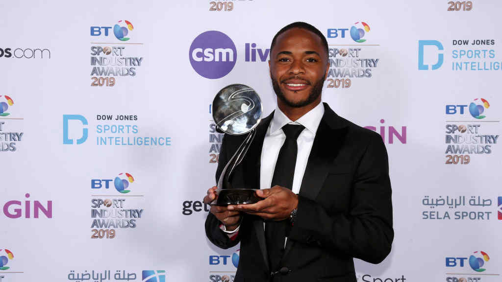 Manchester City's England forward Raheem Sterling was on Thursday awarded The Integrity and Impact Award at the BT Sport Industry Awards for speaking out on a range of social issues, including racism.