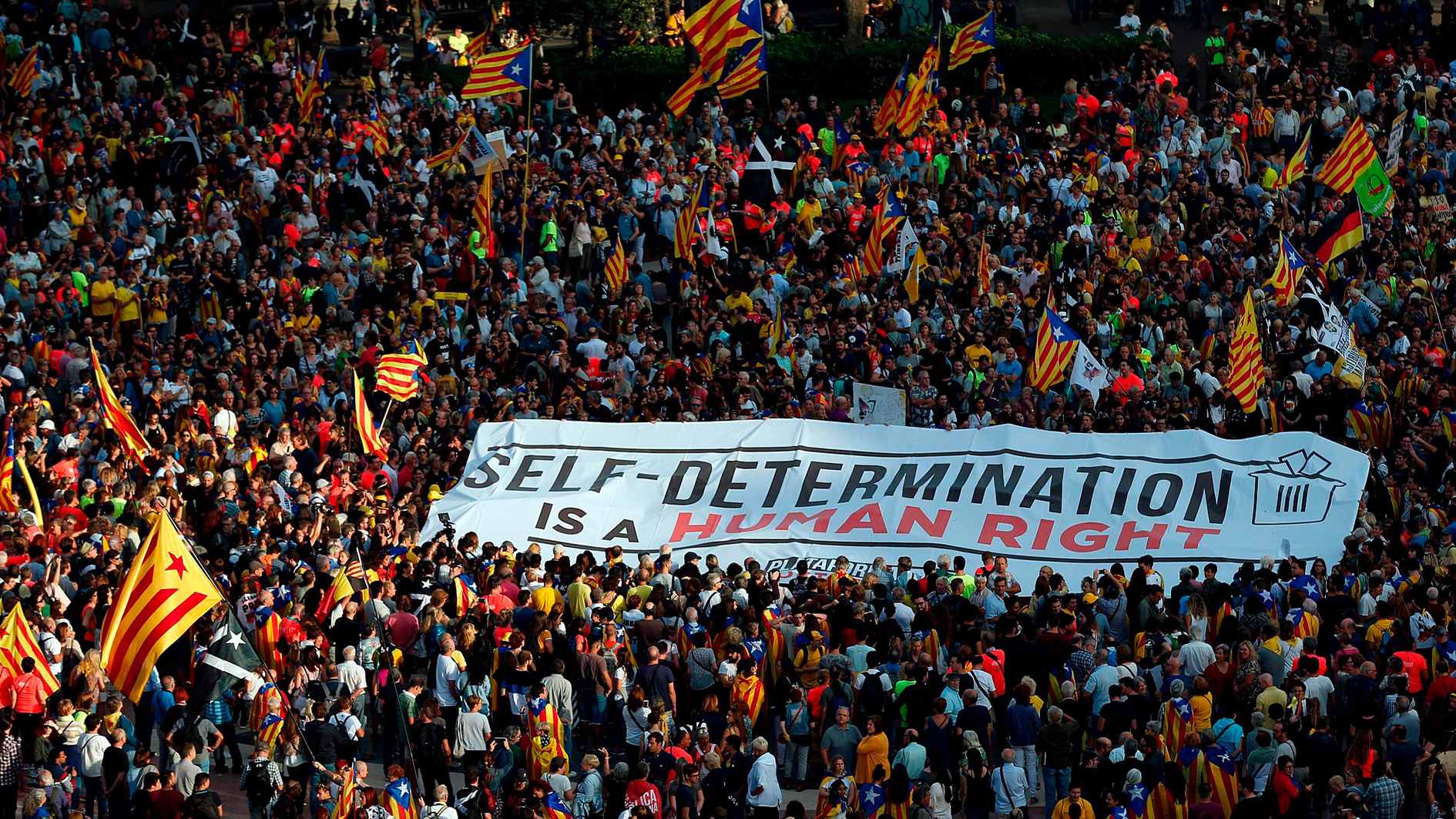Tens of thousands of pro-independence supporters gathered across cities and towns in Catalonia on October 1 to mark the one-year anniversary of the contested referendum on independence. Municipal police said up to 180,000 protesters gathered in Barcelona pushing for independence.