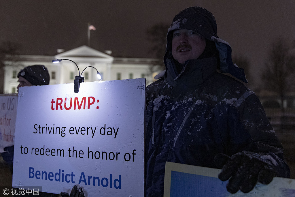 A demonstrator holds a sign while protesting outside of the White House during the partial government shutdown in Washington, D.C., U.S, January. 12, 2019. /VCG Photo