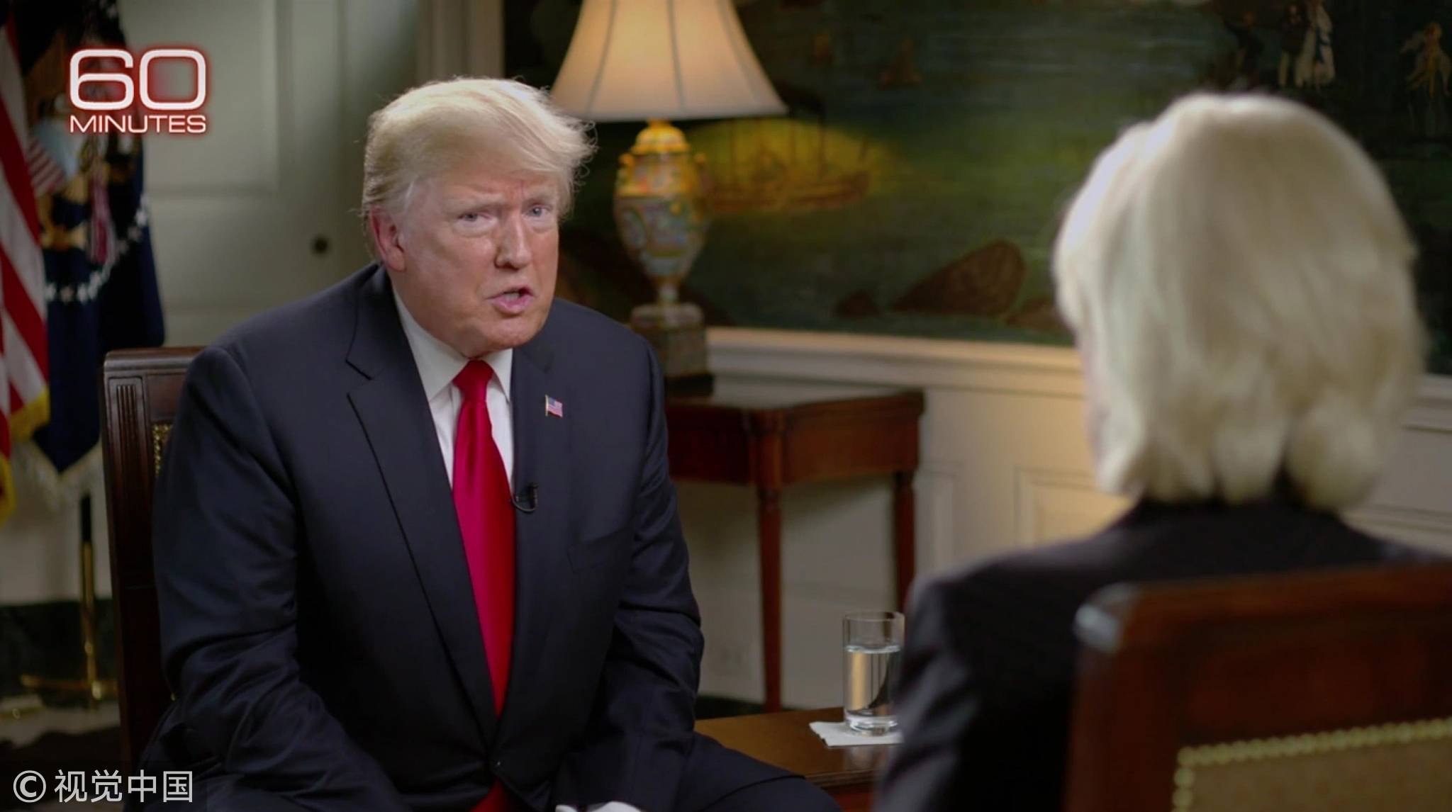 US President Donald Trump in an interview with journalist Lesley Stahl, Los Angeles, CA, October 10, 2018. /VCG Photo