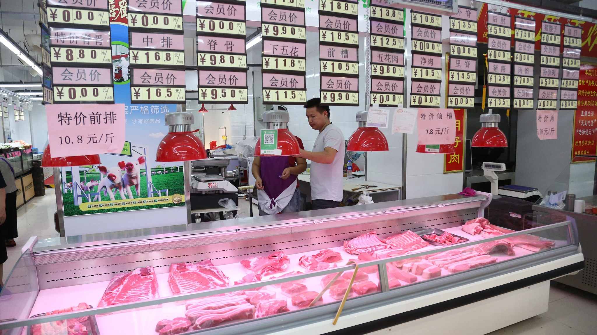(Cover: A pork shop is pictured in Shenyang, capital of Liaoning Province, August 5, 2018. Shop owners said the sales decreased after the outbreak of African swine fever in the Province. /VCG Photo)