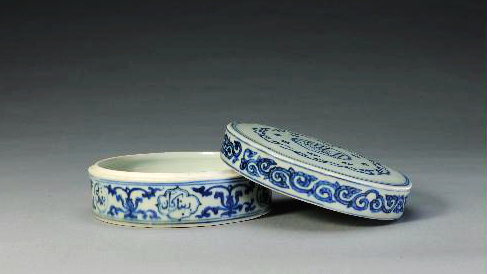 A blue and white porcelain box with Arabic inscriptions. /Photo courtesy of sach.gov.cn