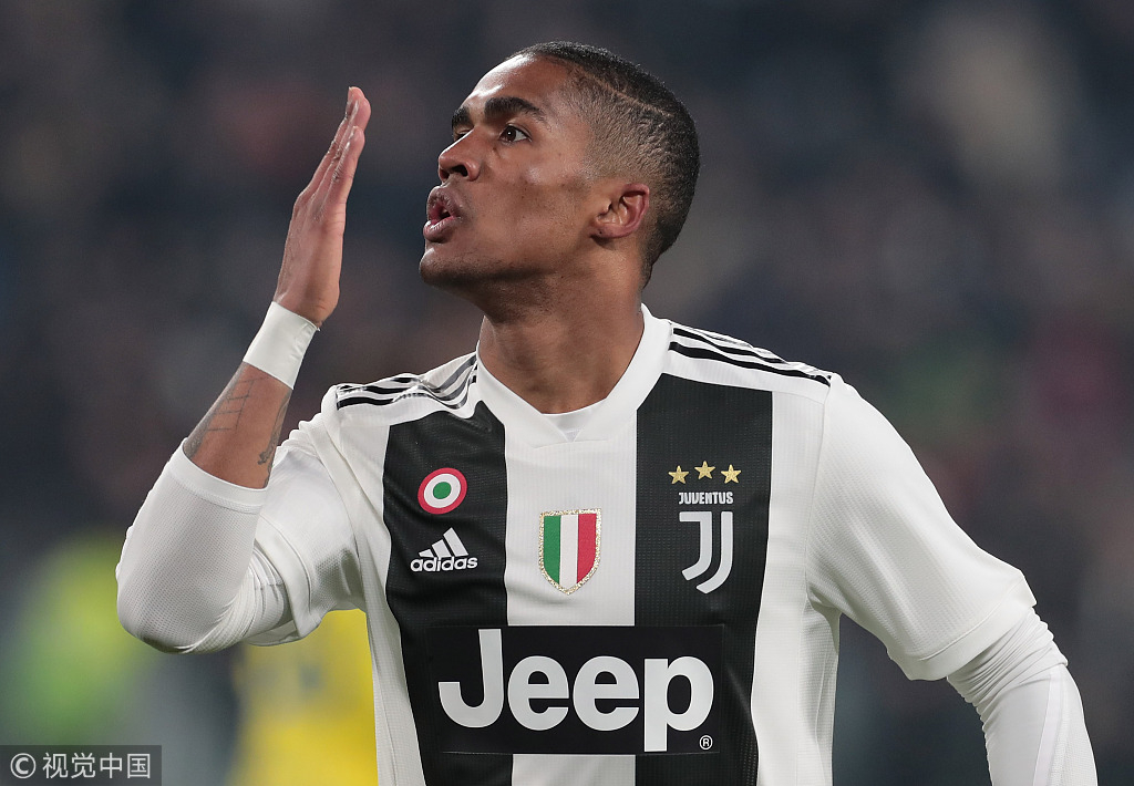 Douglas Costa of Juventus celebrates after scoring the opening goal during the Serie A match between Juventus and Chievo at Allianz Stadium in Turin, Italy on January 21, 2019. /VCG Photo