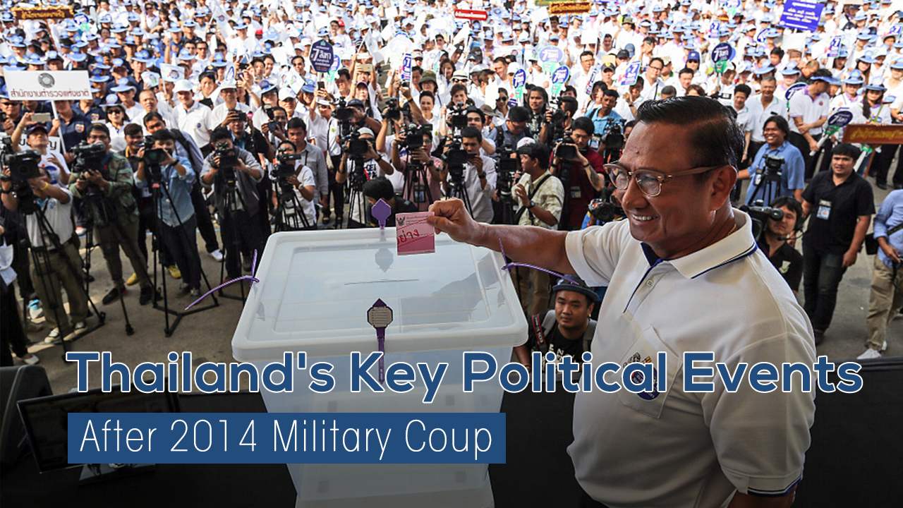 The people of Thailand are casting ballots on March 24 in the country's most complicated voting in history. The poll is widely considered to be a battle between three forces: the pro-military faction, populists opposed to the military and the swing forces. Nearly 51.4 million eligible voters will decide the country's future: towards re-establishing a democratically elected government or recognizing legitimized military rule. Let's look at Thailand's key political events since the 2014 military coup.